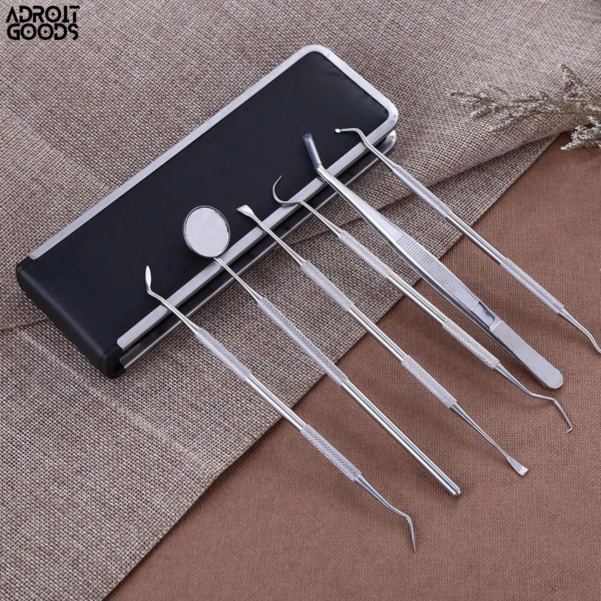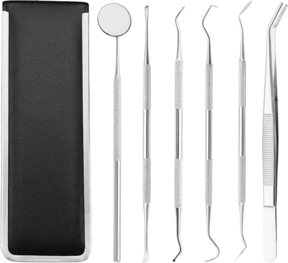 AdroitGoods 7 Delige RVS Tandarts Setje – Incl Haakje En Spiegel – Tandenstokers – Tandplak – Gebit Verzorging Setje