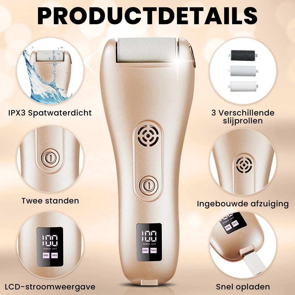 Met de BAESS eeltverwijderaar krijgt u binnen enkele seconden mooi verzorgde en zachte voeten. Deze slimme elektrische eeltverwijderaar werkt met 3 roterende unieke slijprollen, een ingebouwd stofzuigsysteem en opslag. De elektrische voetvijl/eelt verwijderaar maakt gebruik van een innoverende technologie waardoor ongewenst eelt veilig en gemakkelijk verwijdert wordt en de voeten weer een schone uitstraling krijgen.