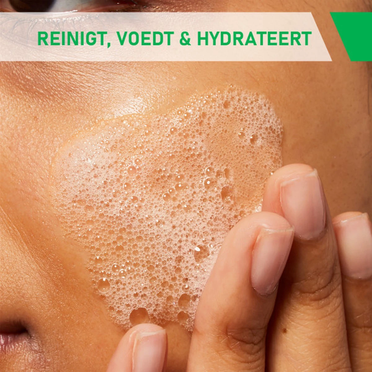 • Masseer de reiniger in op een vochtige huid.
