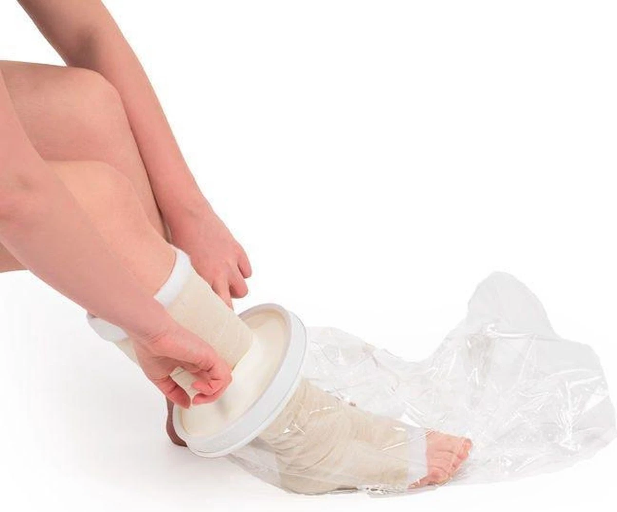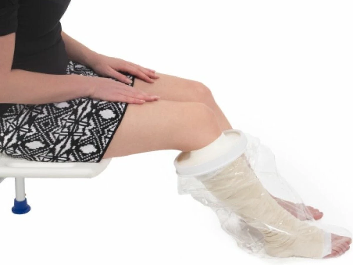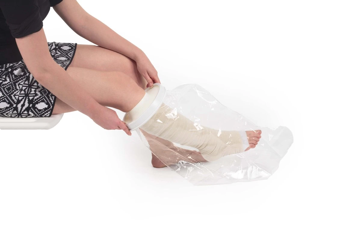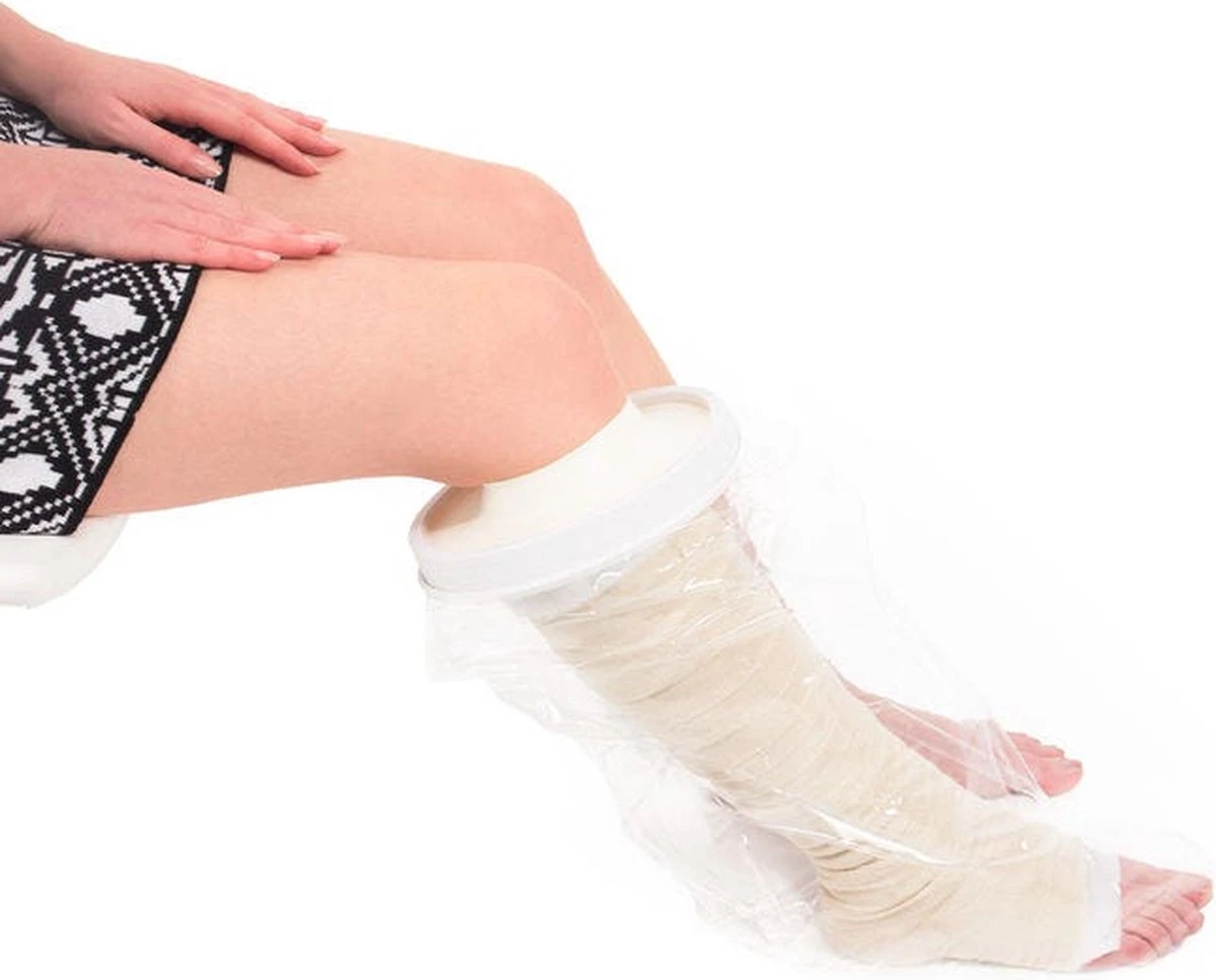 Douchehoes onderbeen De Vitility douchehoes voor het onderbeen is onmisbaar als je lekker wilt douchen terwijl je onderbeen in het gips of verband zit. De hoes beschermt het verband tegen nat worden; dankzij de elastische sluiting aan de bovenkant kan er geen water in de hoes lopen. Je hebt geen hulp nodig bij het aan- en uitdoen van de douchehoes, want dit gaat heel gemakkelijk.
