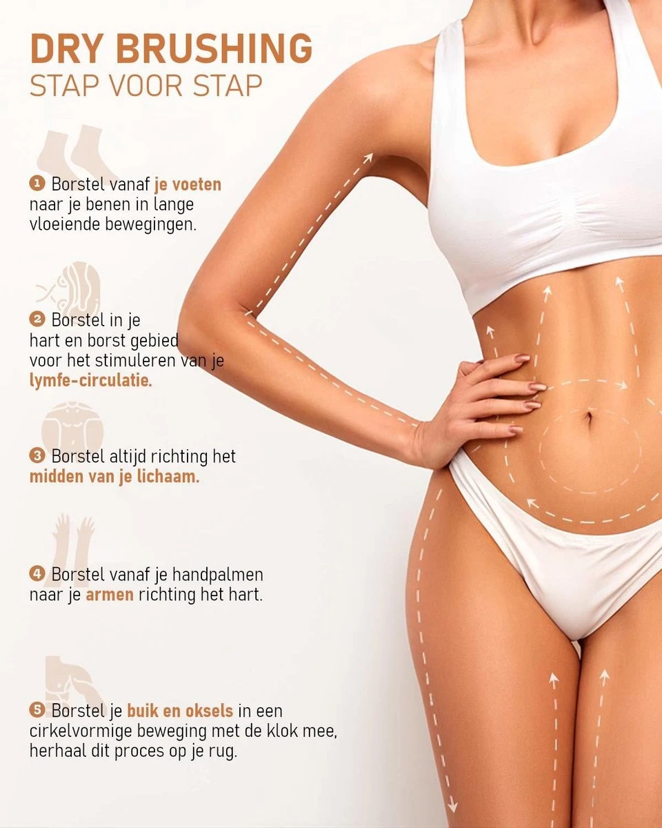 Fesio Lichaamsborstel Met Lange Steel – Dubbelzijdig – Dry Brushing Rugborstel/Badborstel/Doucheborstel/Huidborstel – 43 Cm