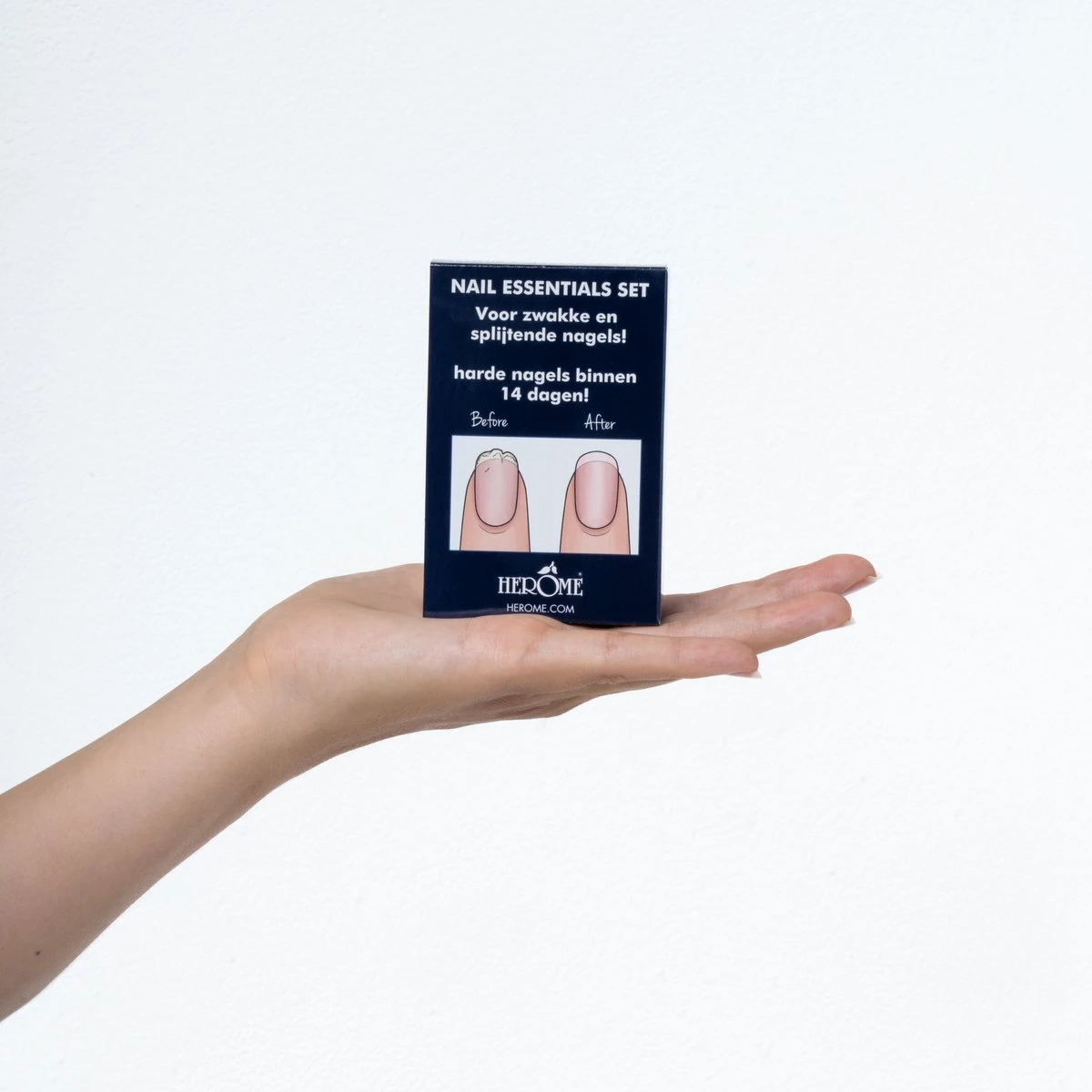 Heb jij last van splijtende, zwakke nagels? Deze Nail Essentials Set Blauw stopt splijten onmiddellijk. De nagelverharder zorgt ervoor dat zwakke en broze nagels niet afbreken. Na 8 dagen zijn de eerste resultaten merkbaar! Met deze nagelversterker worden je nagels binnen no-time ijzersterk. Maak kennis met de #1 Nagelverharder waar Herome vrouwen al sinds 1982 mee helpt! Resultaat? Lange en sterke nagels binnen 30 dagen met de eerste resultaten binnen 8 dagen.