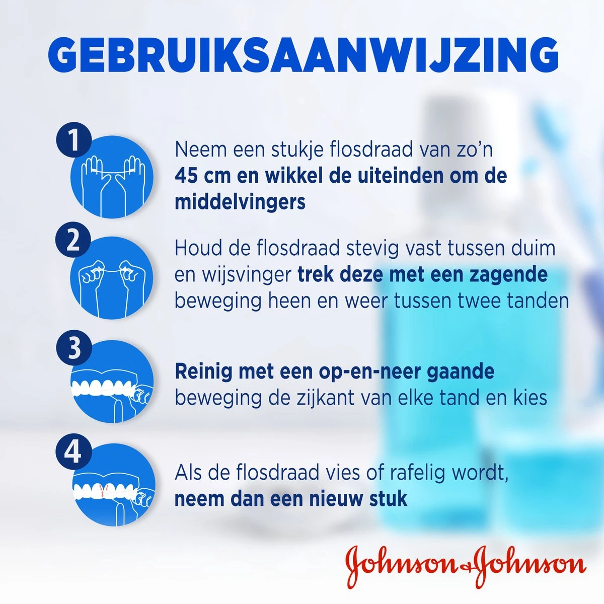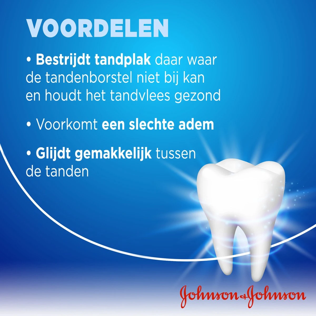 Johnson & Johnson Reach® dental waxed floss verwijdert plak en voedselresten tussen de tanden en op die plaatsen waar de tandenborstel niet bij kan komen. Dagelijks gebruik van floss verkleint de kans op gaatjes, houdt je tandvlees gezond en voorkomt slechte adem.
