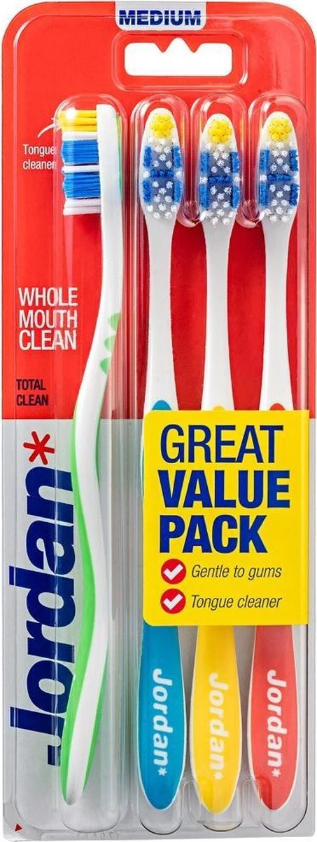 Jordan – Total Clean Tandenborstels Medium – 4 Stuks