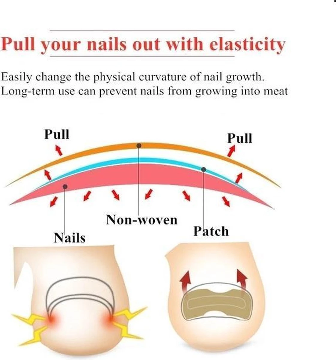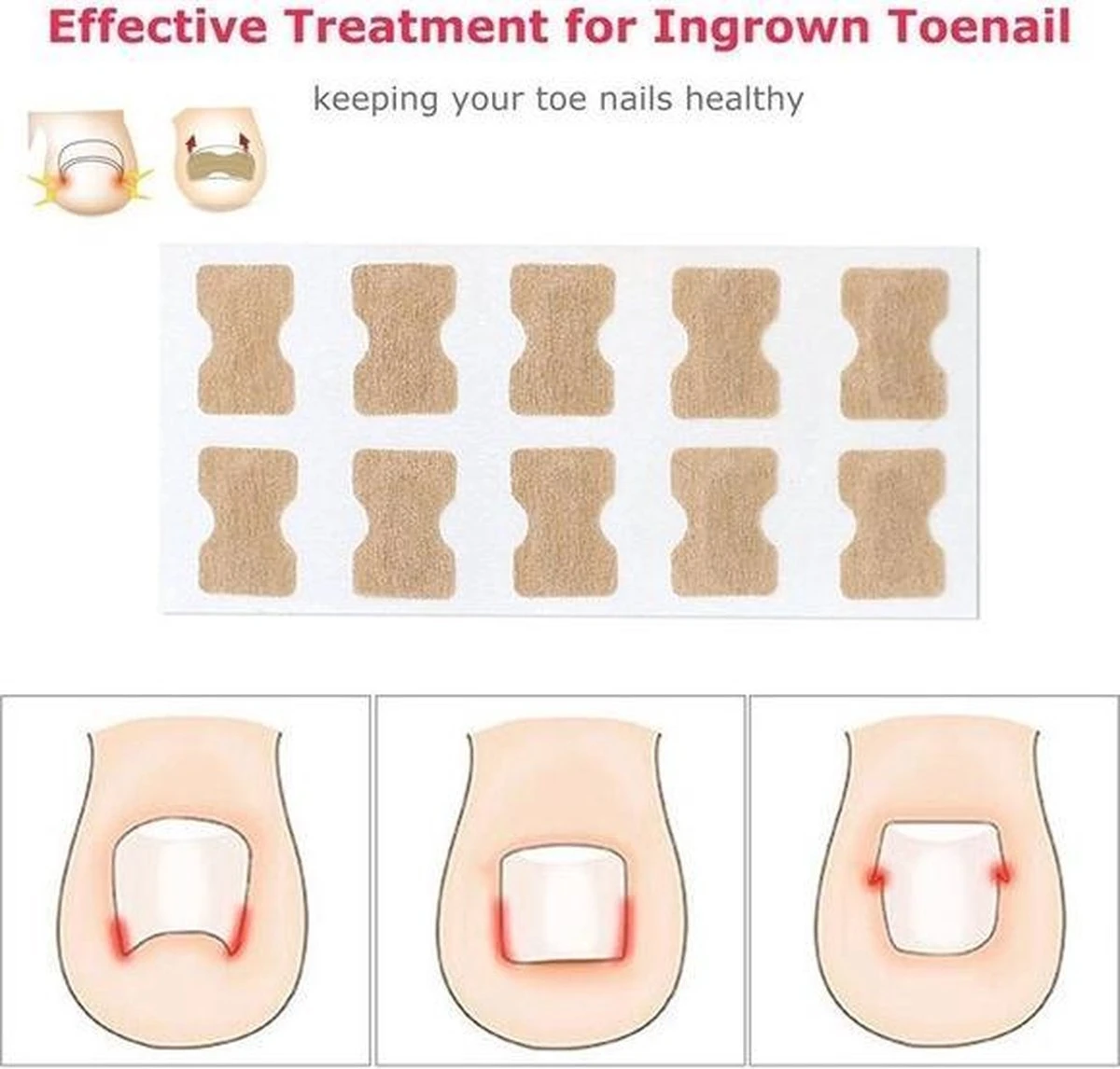 Als de teennagels groeien hebben ze de neiging om in te groeien, onze teen nagel pleisters zorgen voor een druk op de nagel die er voor zorgt dat de nagel op de juiste manier groeit.